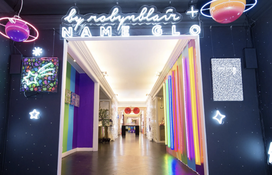 It was an honor to be selected as a Bergdorf Goodman Artist in Residence. For the installation, I partnered with NameGlo for a series of signature neon pieces to outfit the famed department store in candy-colored fashion.